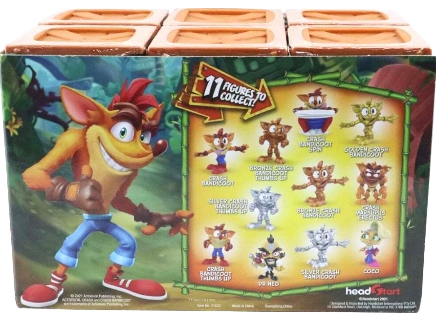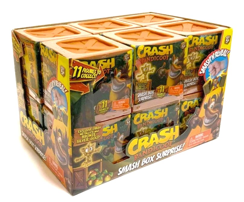 Just like in the games, each smashable 2.5″ box reveals a mystery Crash Bandicoot figure inside.