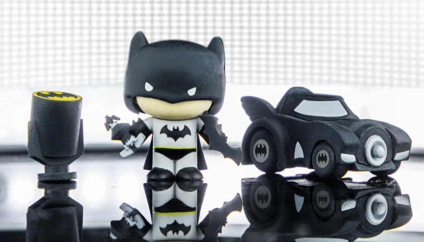 – Features icons like Batman, Superman, Wonder Woman, The Flash, Aquaman, Harley Quinn, The Joker, and the Batmobile