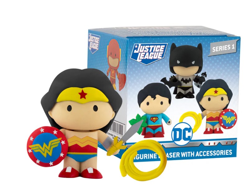 Unbox the thrill with surprise mini-figure erasers of your favourite DC heroes and villains. Each mystery box includes one randomly selected character plus fun accessories—perfect for play, display, or collecting.