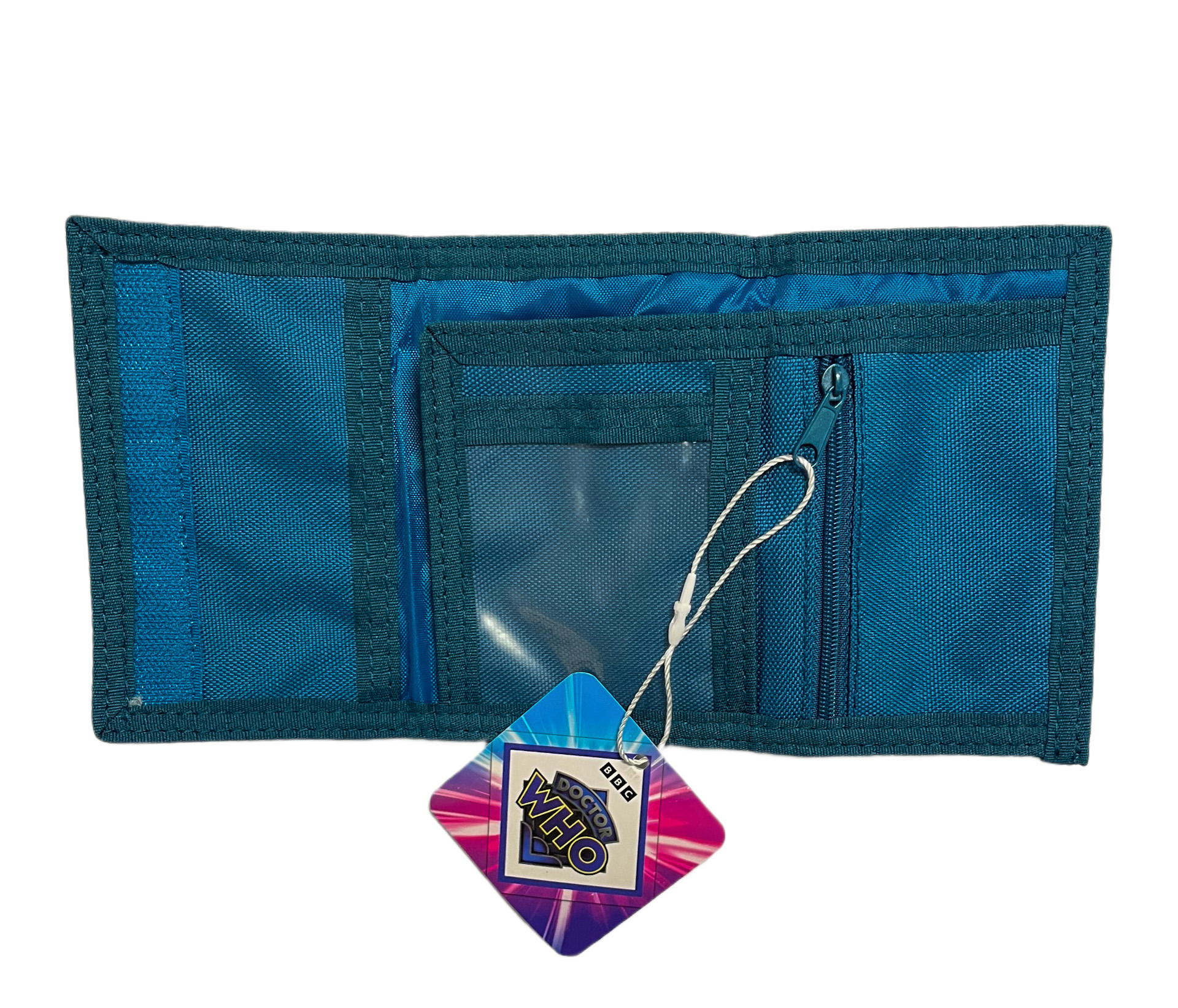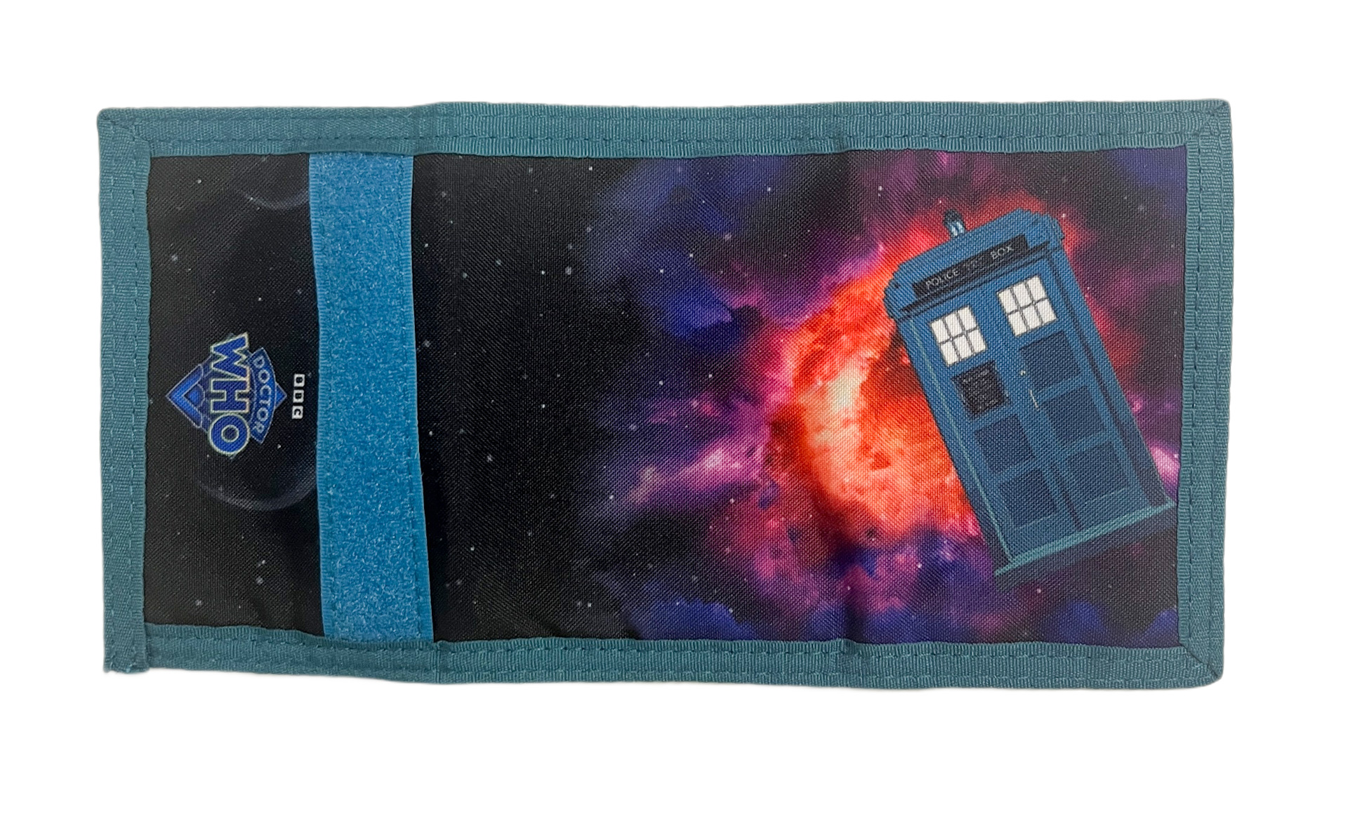 Kids trifold Doctor Who wallet with velcro closure with Tardis design. Perfect for gifting.