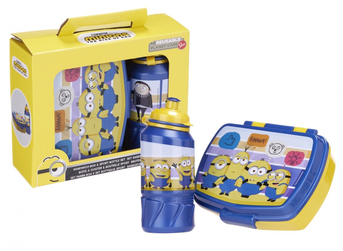 Sandwich lunch box and Sports Bottle Gift Sets from two of your favourite characters L.O.L Surprise and Minions The Rise of Gru.