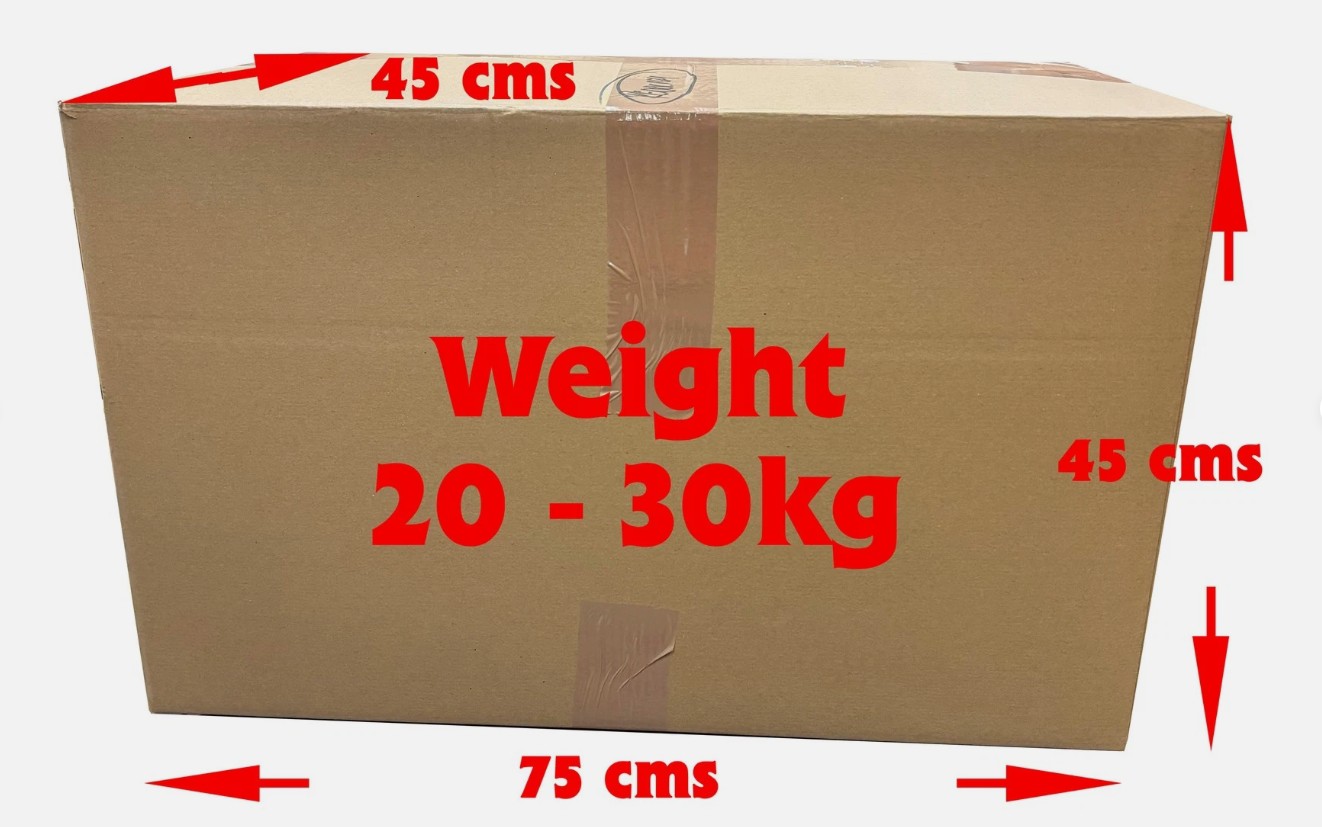 The box will be crammed full and measures 75 x 45 x 45cm with a weight of between 20 to 30kg
