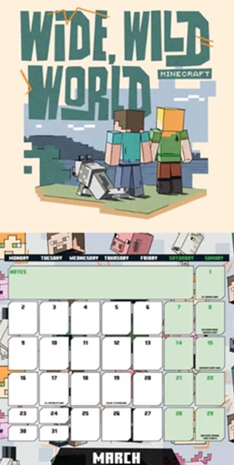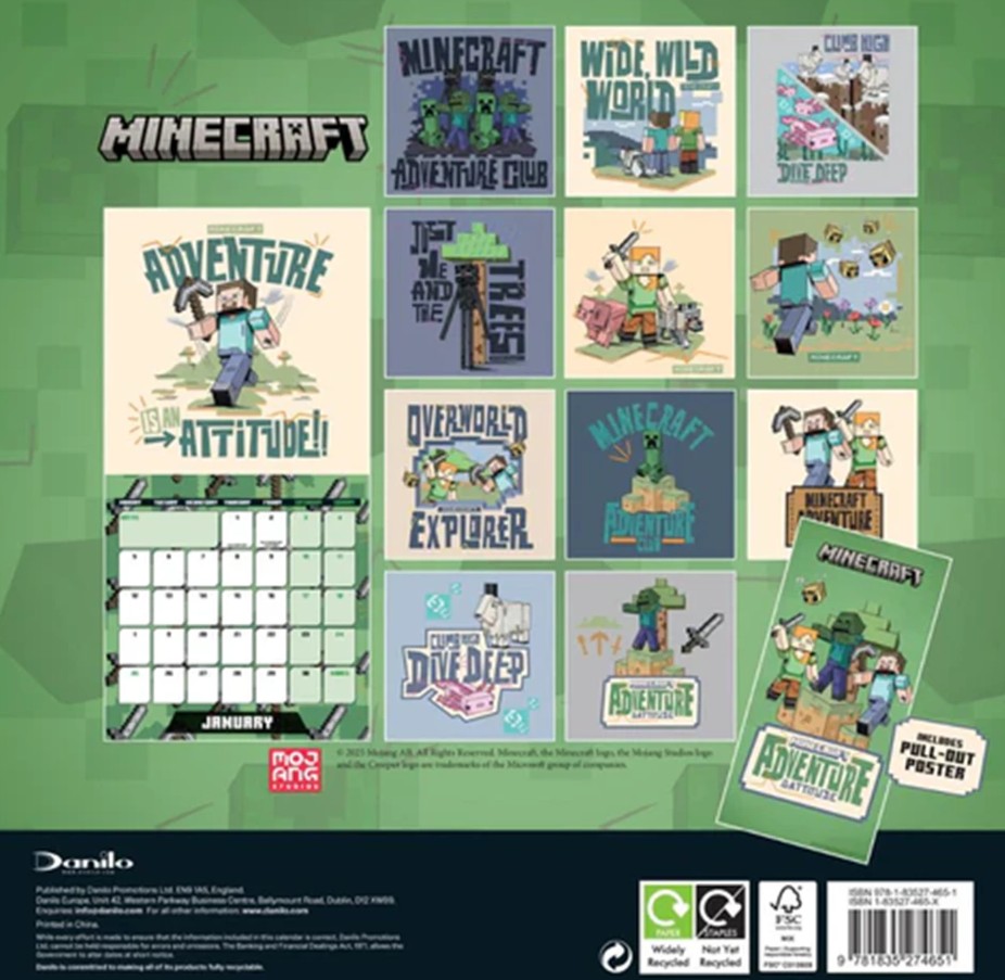 Immerse yourself in the enchanting universe of Minecraft all year round with the Minecraft Square Format Calendar!