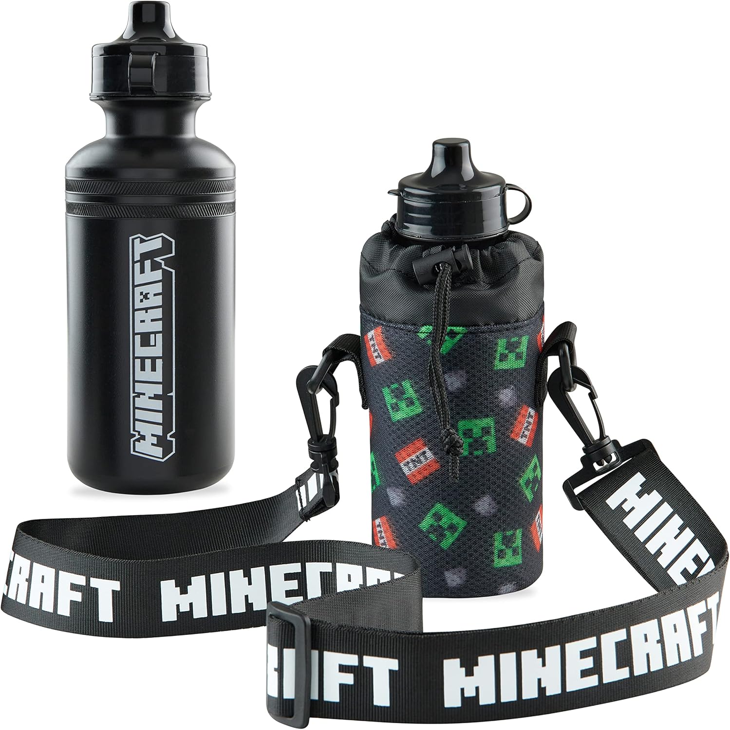 This kids water bottle and holder is officially licensed Minecraft merchandise and features an eye-catching design that will be instantly recognisable by fans