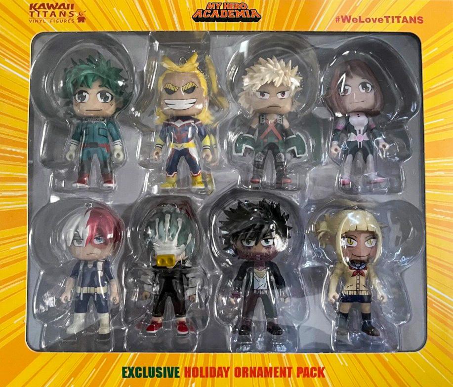 Celebrate the holidays with this exclusive My Hero Academia 8-Piece Kawaii Titans Ornament Gift Set.